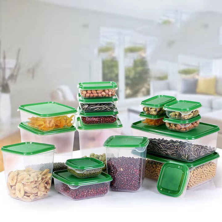 Vendita calda Set di 17 plastica contenitore per alimenti Set di conservazione frigo scatola di conservazione dispensa Organizer con coperchio