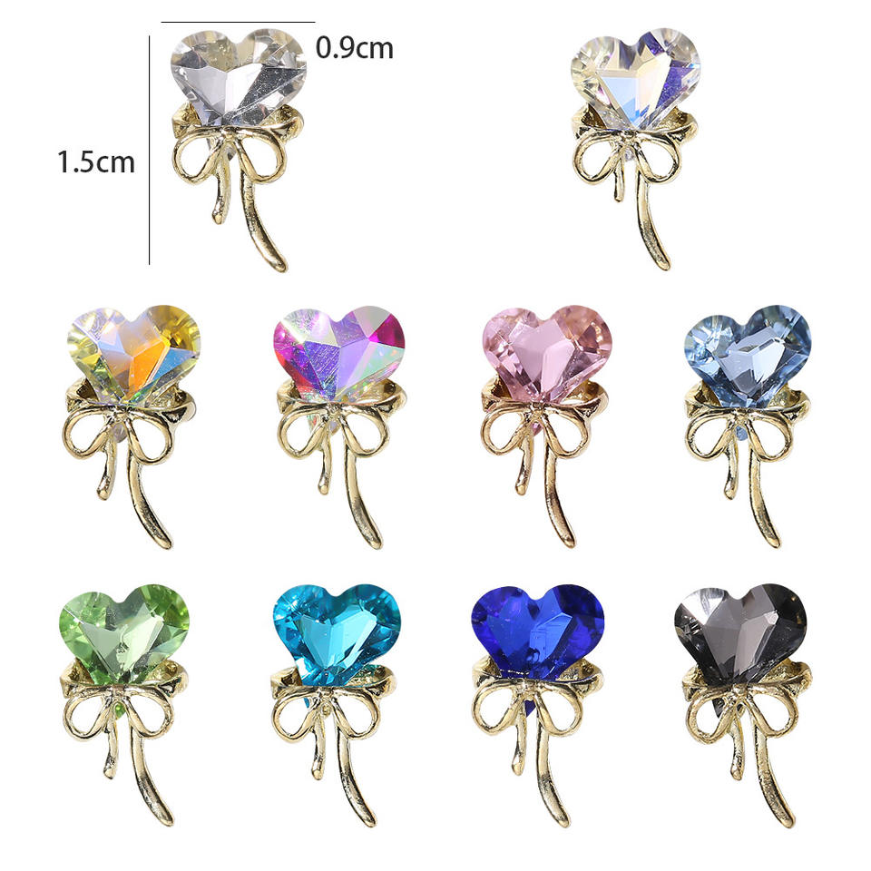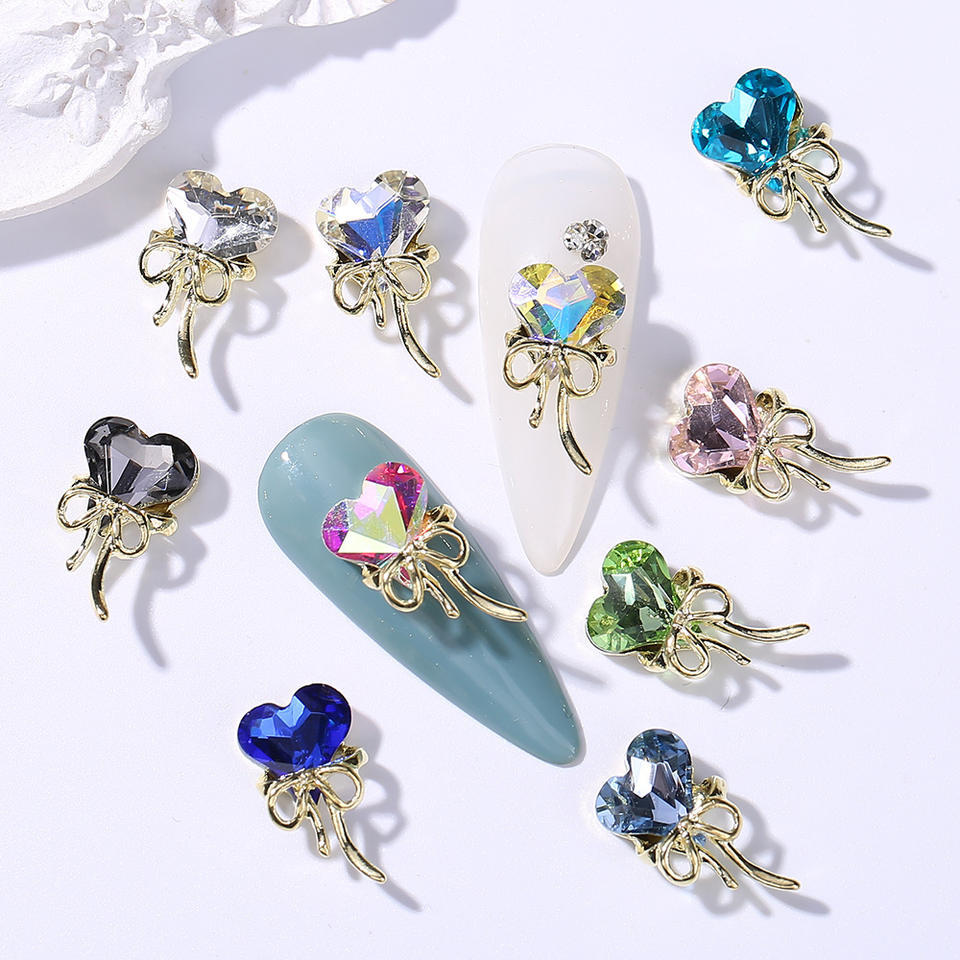 Vendita calda ciondoli a forma di cuore con ciondoli con strass gemme di cristallo oro metallo farfalla arco a forma di cuore pietre e cristalli per unghie