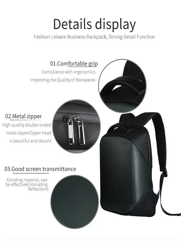 Vendita calda smart LED display pubblicitario elettronico ghiaione nuovo zaino impermeabile per affari e tempo libero all'aperto