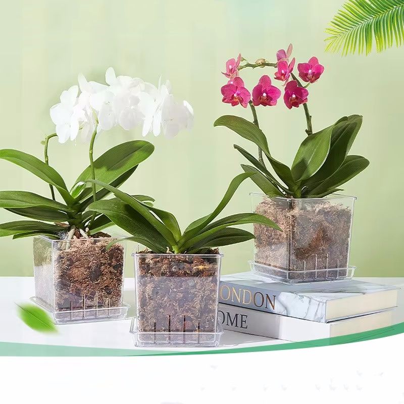 Vendita calda speciale classico eco-friendly trasparente di controllo della radice di plastica quadrato traspirante Phalaenopsis vaso di fiori