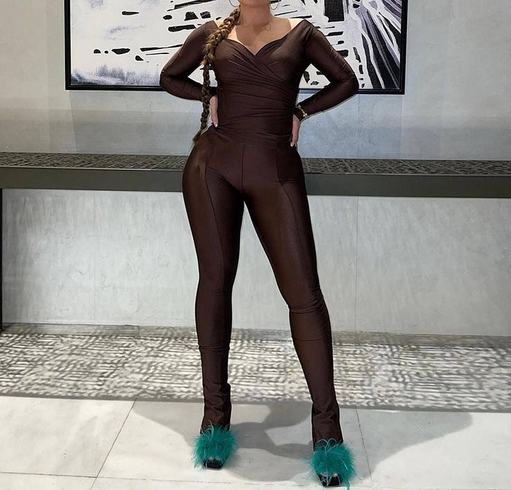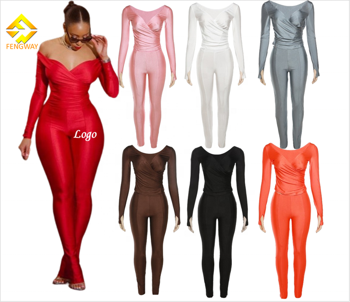 Completo Donna Primaverile Due Pezzi con Maniche Lunghe, Scollo a V Sexy e Leggings Aderenti