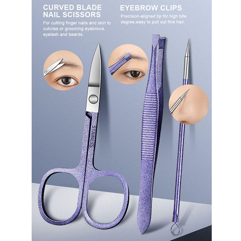 Hot Sale Stainless Steel Manicure Set Personal Care Tools Accessories Sharp Scissors Nail Clippers Kit With Leather Gift Case
