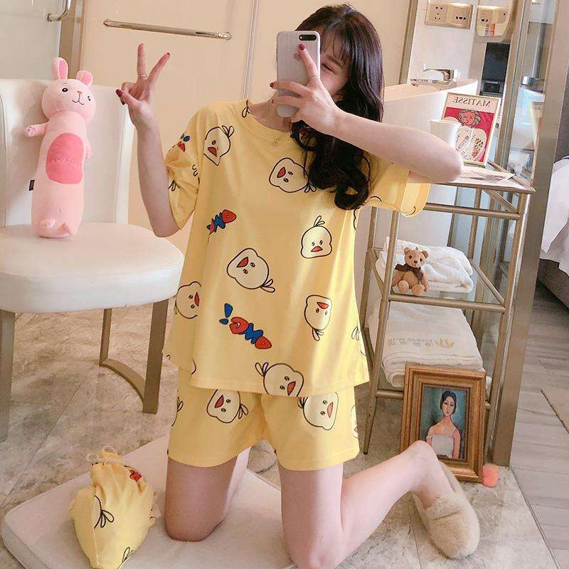 Hot Sale Summer Women Homewear Clothes Set Cartoon Printing Cotton Pajamas Fashion