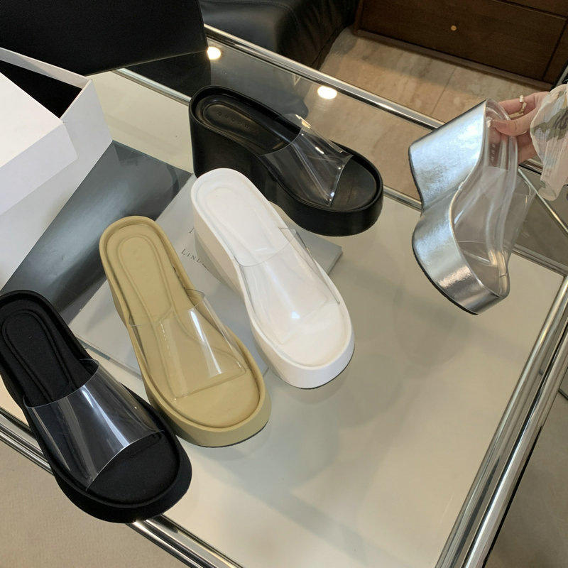 Vendita calda piattaforma cinturino trasparente con zeppa sandali tacco alto da esterno pantofole da spiaggia estate ciabatte