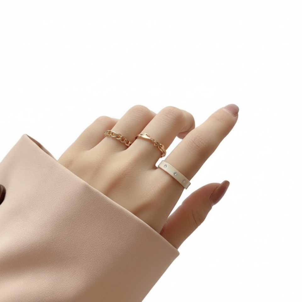 Hot Sale Trending Fashion Couple Rings Cute Minimalist Boho Inlay with 18K Rose Gold Plating Men's Silver Jewelry Wholesale