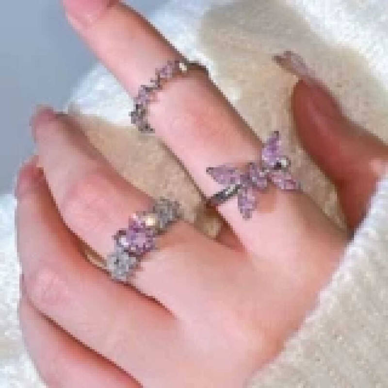 Vendita calda di tendenza di lusso argento stella intarsio anello regolabile per ragazze dichiarazione di moda con rosa placcatura in oro all'ingrosso