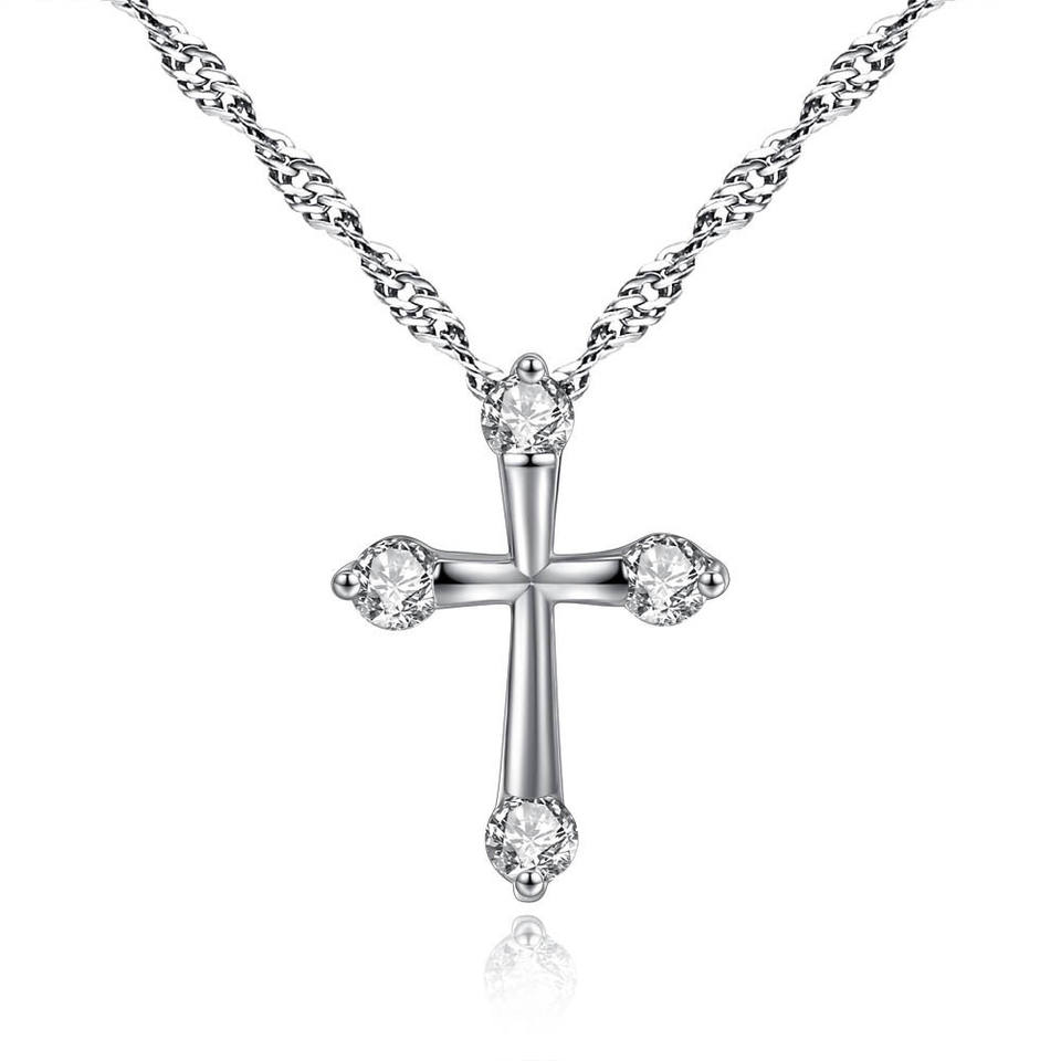 Hot Sale Trendy Cross Pendant Necklace for Women Austrian Cubic Zirconia Stone Link Chain for Gifts Jewelry