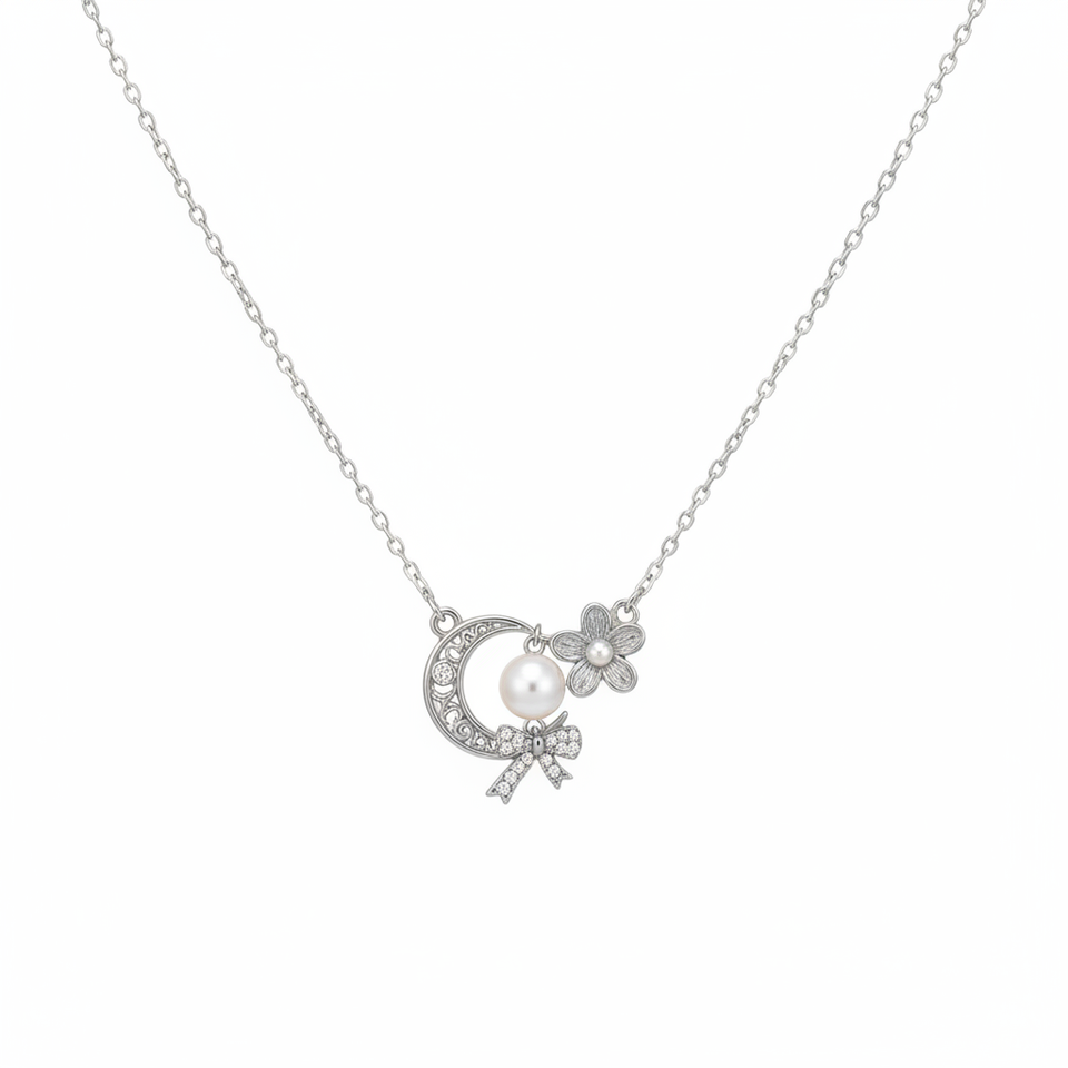Vendita calda Vintage Boho collane a catena Trending moda Figaro argento acciaio inox con fiore di luna perla all'ingrosso