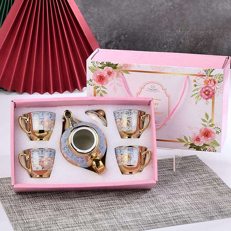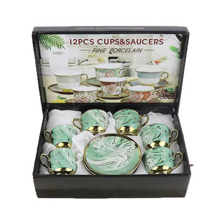 Vendita calda Vintage in ceramica bianco tazze da tè e piattino Set di tazze da caffè arabe di lusso placcate in oro