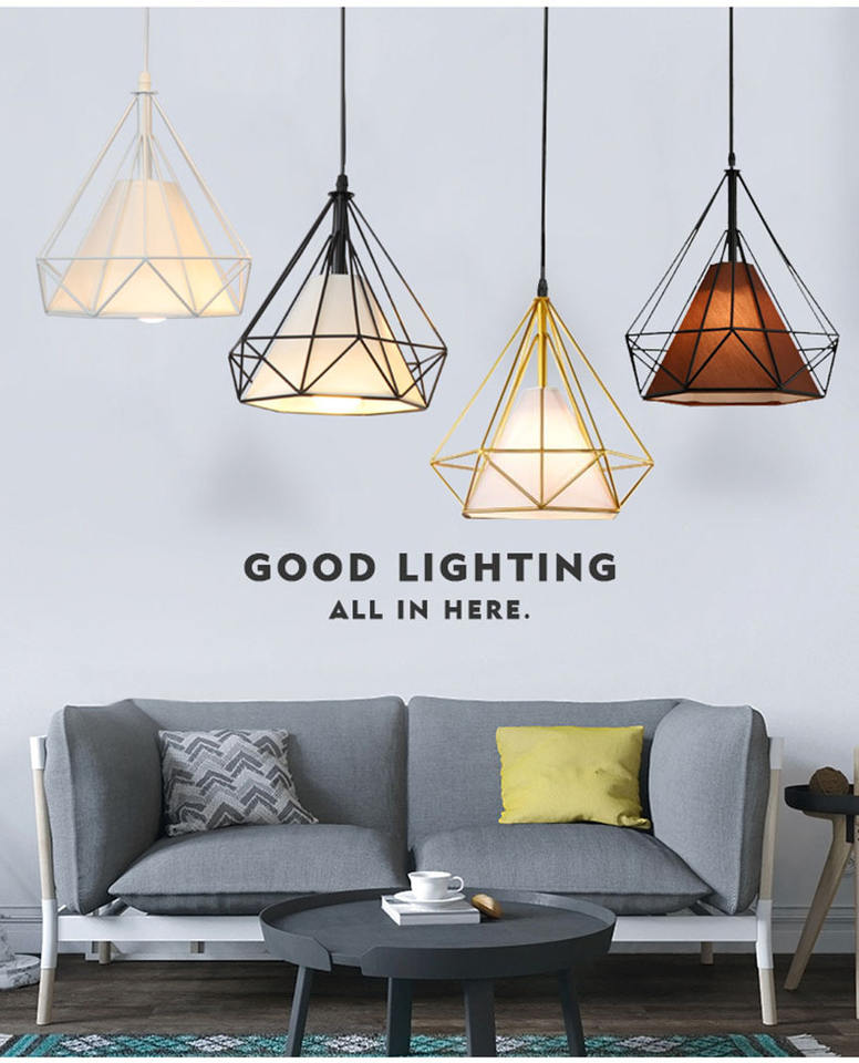 Hot Sale Vintage Designer Hollow Out Iron Fabric Lampshade Hanging Chandeliers Pendant Lights for Dining Room