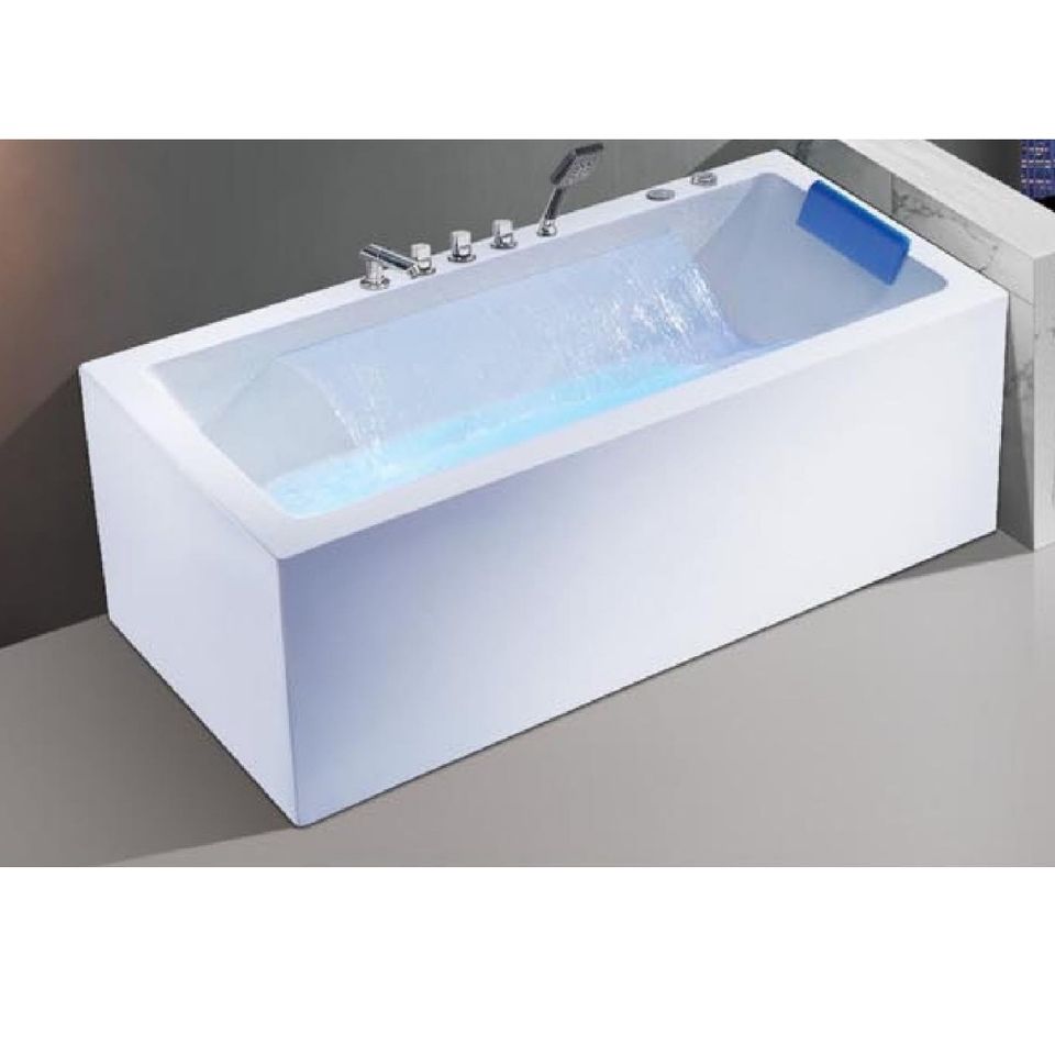 Vasca Idromassaggio Quadrata da Interno con Cascata e Getti d'Aria, Vasca Spa in Acrilico per 1 Persona