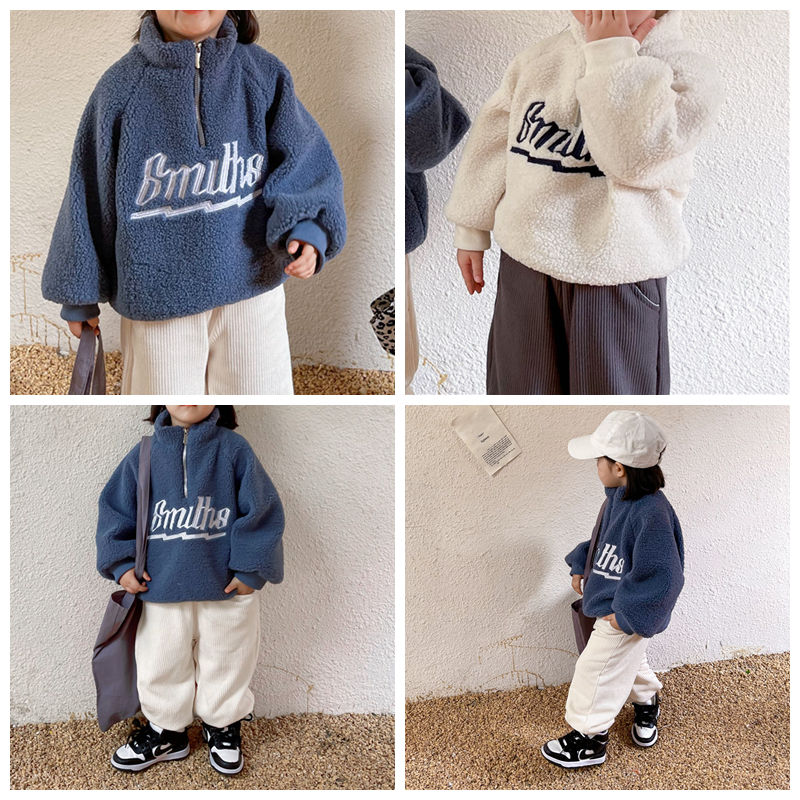Vendita calda inverno bambino vestiti caldi per bambini felpe con cappuccio per bambino bambino in pile mezza cerniera felpa con scritta a collo alto