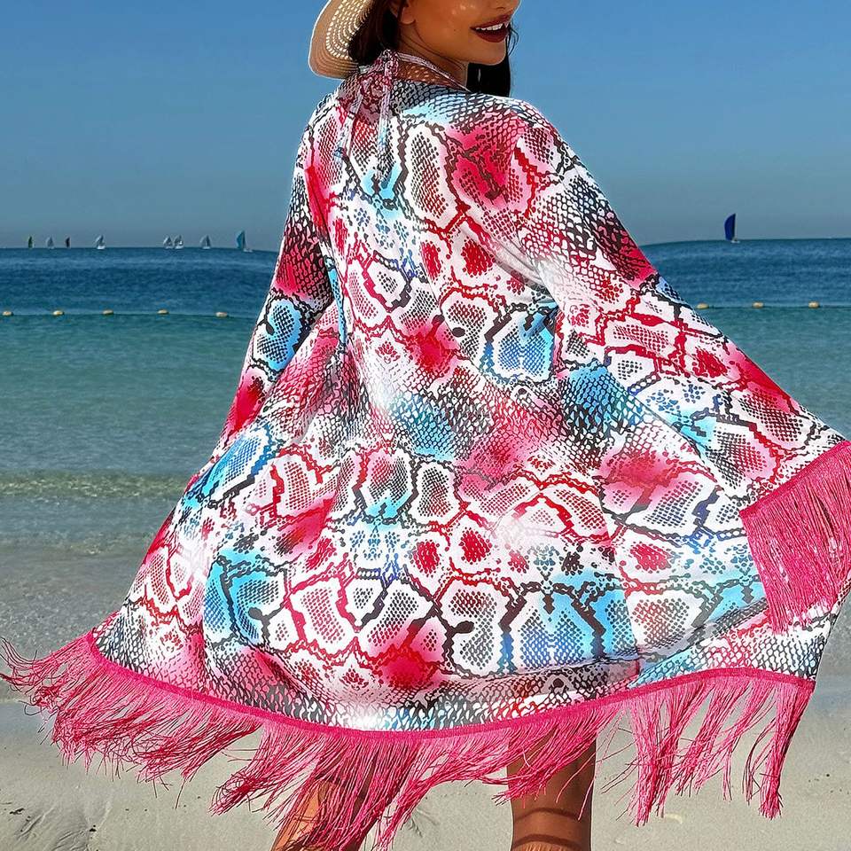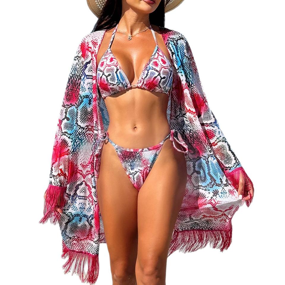Hot Sale Women's Sexy Three-Piece Swimsuit Long Printed Brazilian Bikini Striped Animal Pattern Front Beachwear Cuff Lines Style