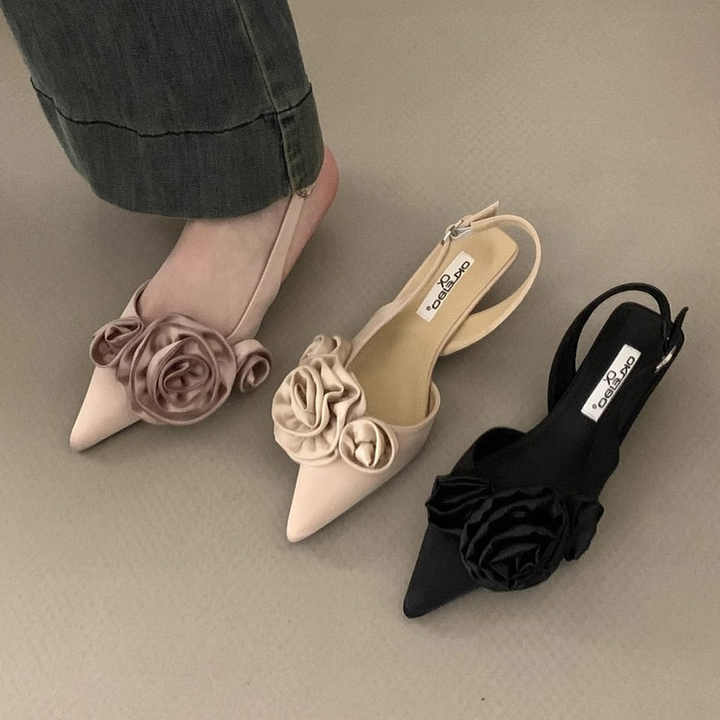 Hot Sale Womens Low Short Heels Summer Sandals Women Ladies Flower Rose Ladies Slingback Luxury Shoes Heels Shoes Sandal