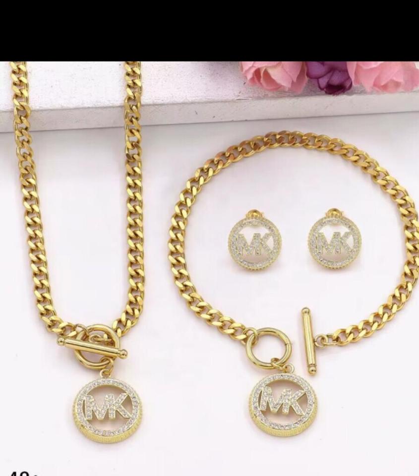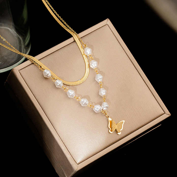 Set di Gioielli in Acciaio Inossidabile Placcato Oro 18K con Perle, Collana, Orecchini e Bracciale, Motivo Farfalla e Lettera M K D