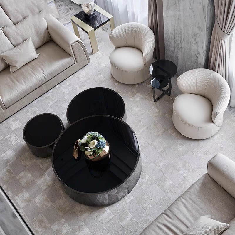 Nome del prodotto:Set da tavolino moderno con piano in vetro rotondo