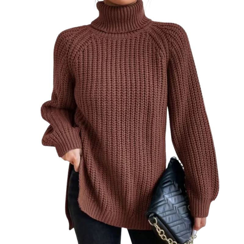 Hot Sales Turtleneck Drop Shoulder Knitted Women's Sweater Fashion Mid Length Style Knit Lady Sweaters