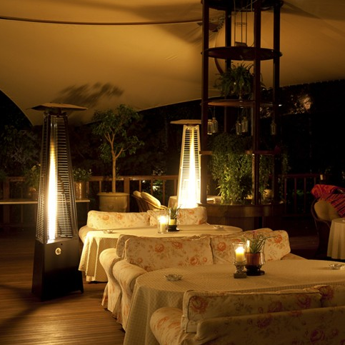 Hot Sell 14KW Outdoor Stainless Steel Pyramid Wood Pellet Patio Stoves Real Flame Pellet Heater Patio Heaters