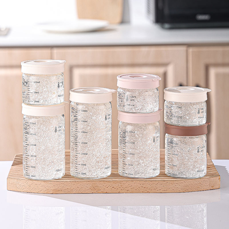 Hot Sell Classic Printing 75ml-700ml Food Grade Ready-to-eat Clear Empty Glass Storage Bottle with Silicone Cap