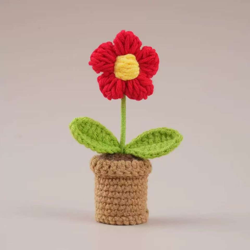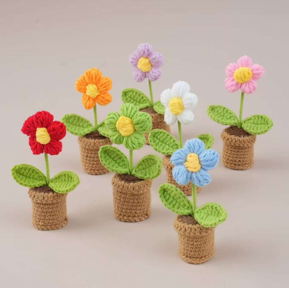 Vaso di Fiori Lavorato a Mano all'Uncinetto, Regalo Decorativo con Girasole, Rosa, Tulipano e Margherita per la Casa
