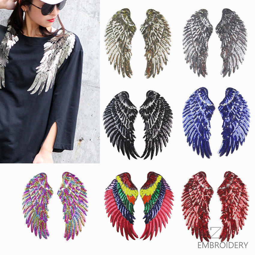 Vendita calda Multi formato ferro su PET paillettes ricamo angelo toppa ala per i vestiti