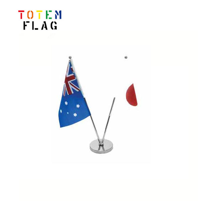 Bandiera da Tavolo Mini Monofacciale/Bifacciale 14x21cm con Asta in Metallo/Legno/Plastica, Base Personalizzabile con Logo, in Poliestere/Raso per Ufficio