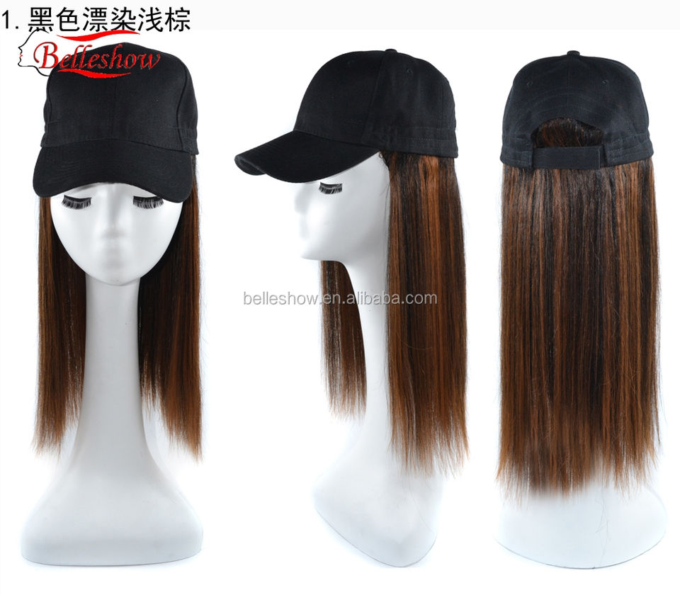 Vendita calda del commercio all'ingrosso a buon mercato nero lungo rettilineo dei capelli Multi-colore opzionale cap parrucca berretto Da Baseball parrucca diritta lunga treccia