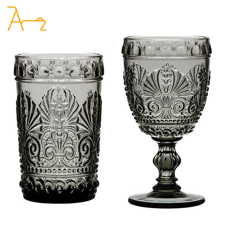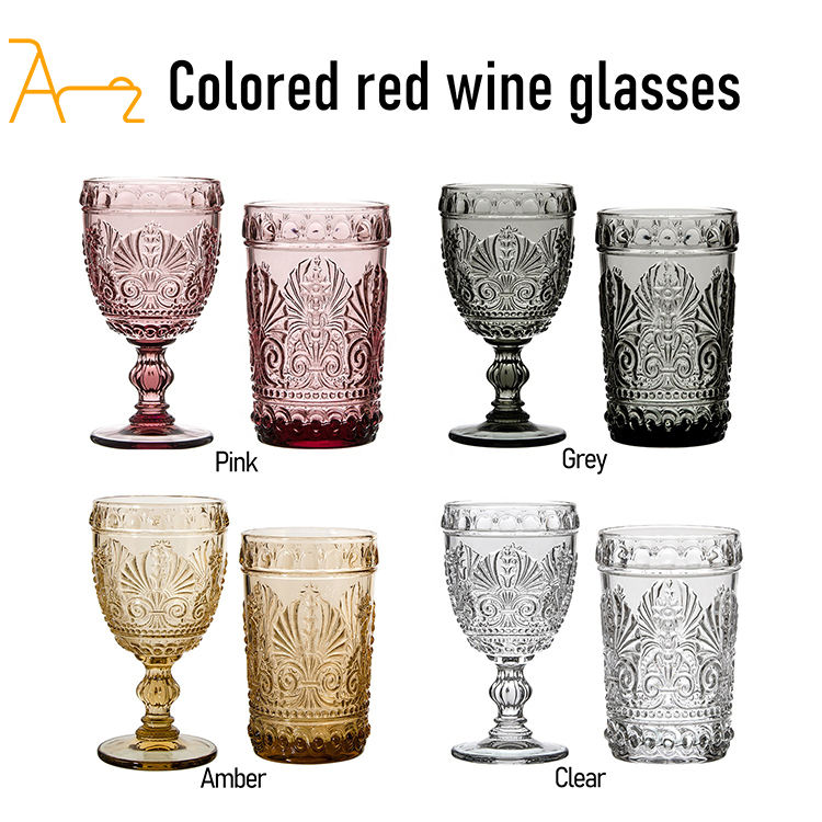 Hot Seller 2023 Purple champagne Wine Glass Cups Vintage pink Goblets Embossed Colorful Water and Juice Glass Cups