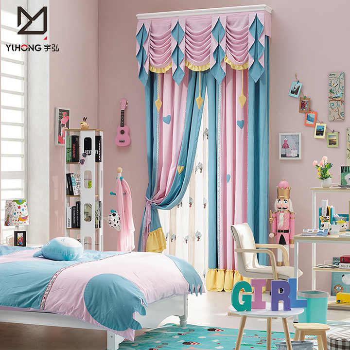 Hot Selling 100% Polyester Fantastic pink Princess Girls Curtains Blackout Curtain for Bedroom Window