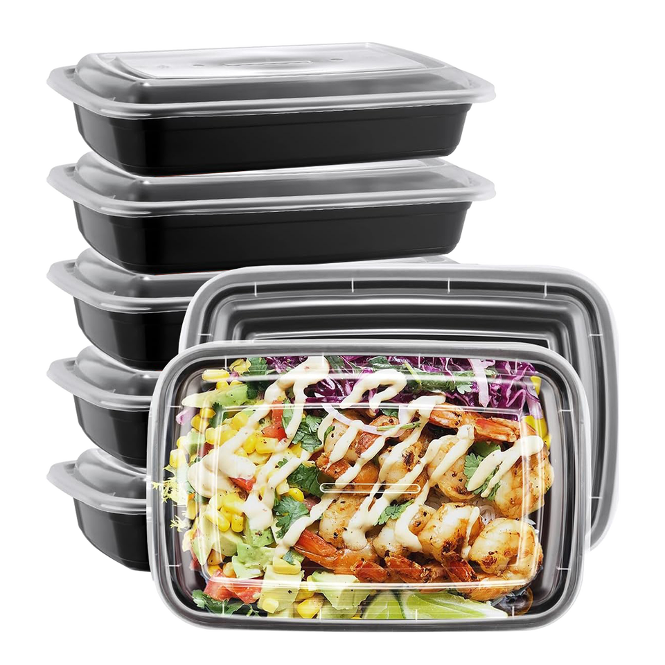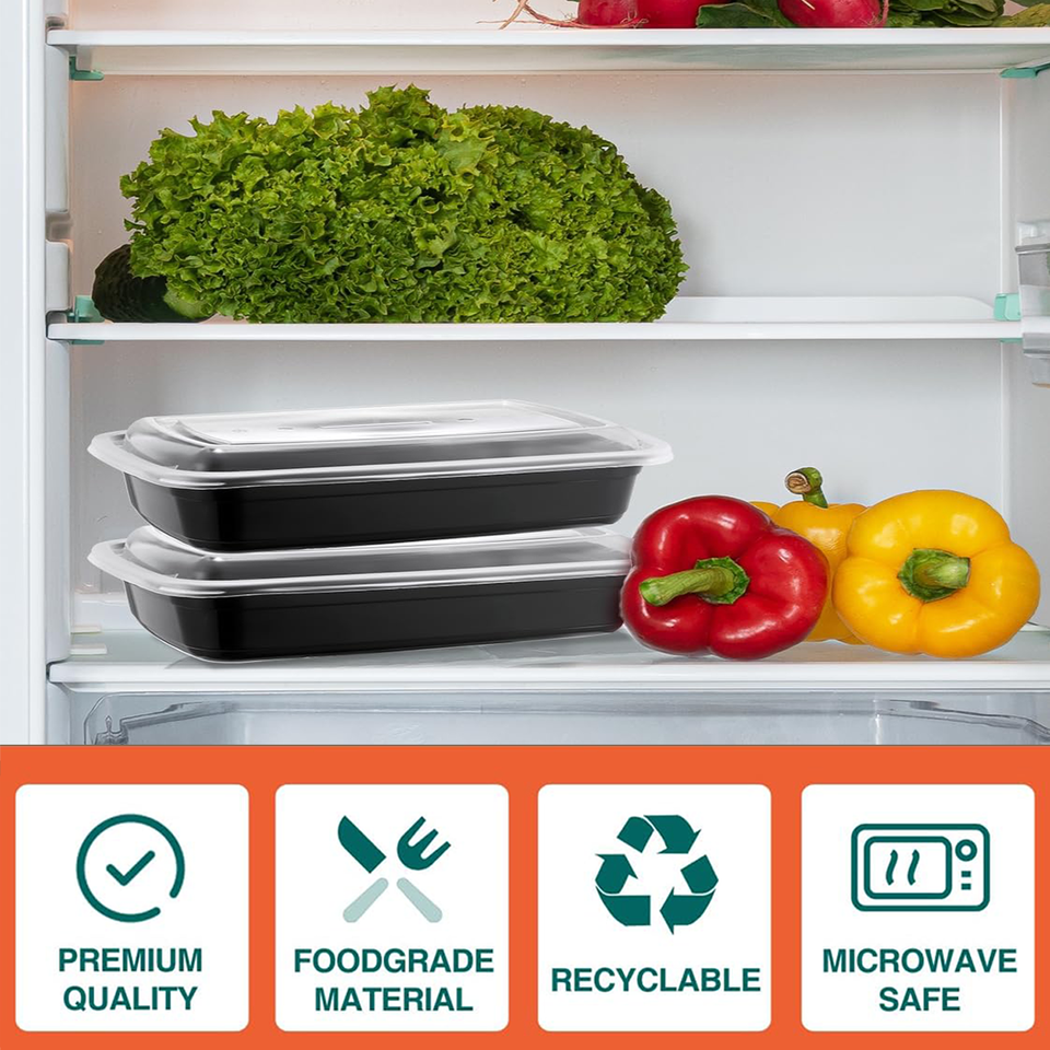 Contenitore per Alimenti in Plastica Rettangolare con Base Nera e Coperchio a Cupola Trasparente, 16/24/28/32/38/58 oz, per Sushi, Gelatina, Hamburger
