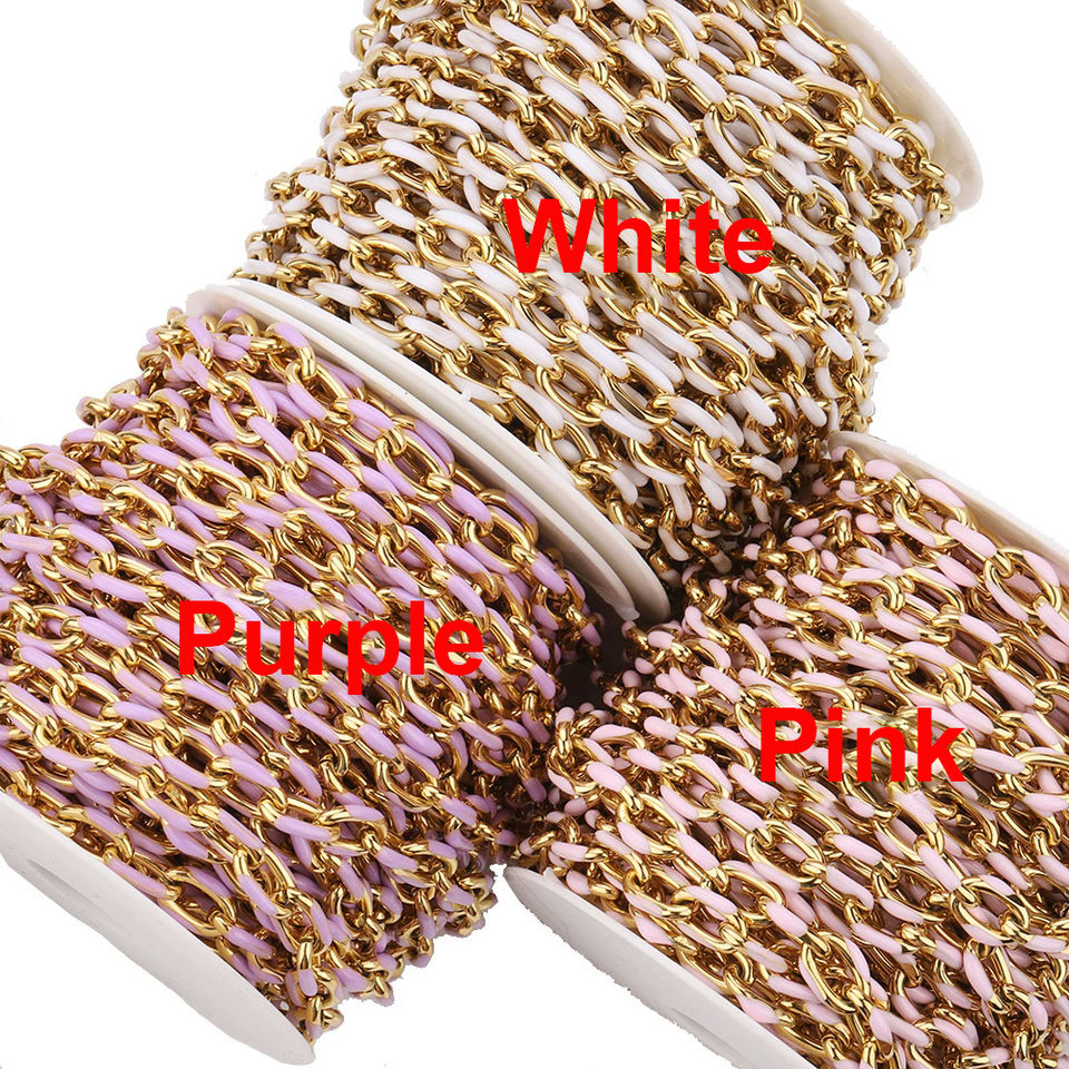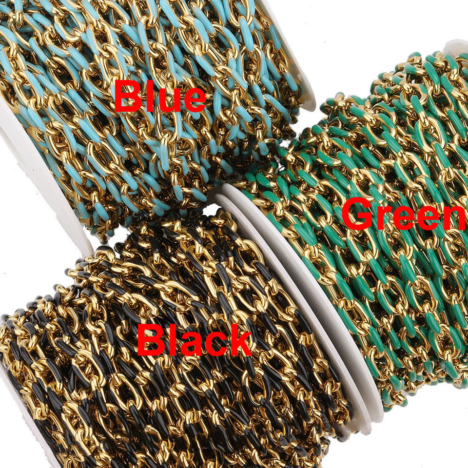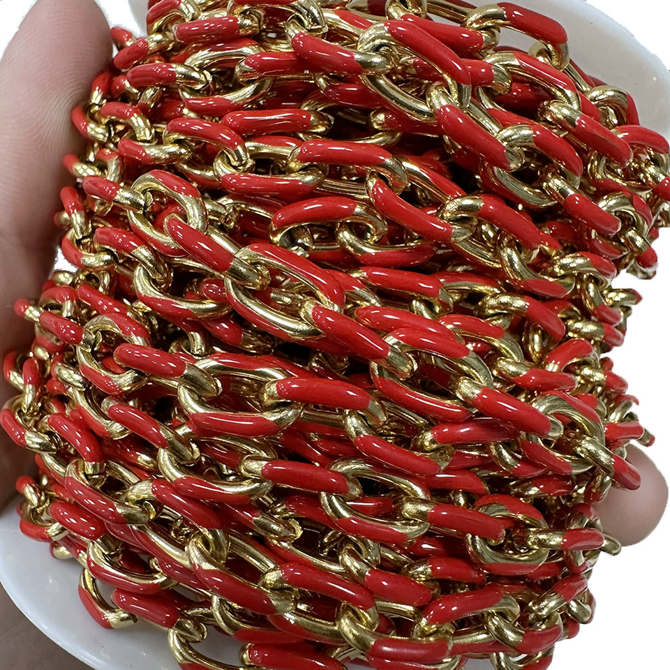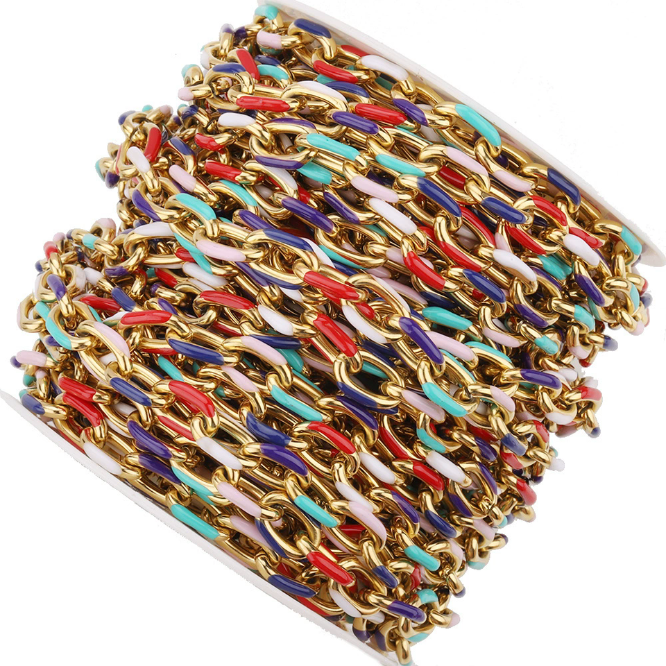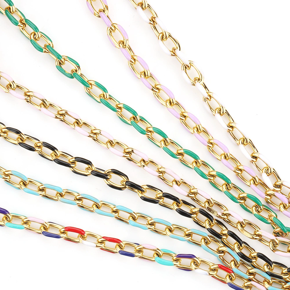 Vendita calda 18K oro PVD gocciolante olio fatto a mano in acciaio inossidabile catena trasversale con smalto colorato spessi grossi gioielli fai da te rocchetto