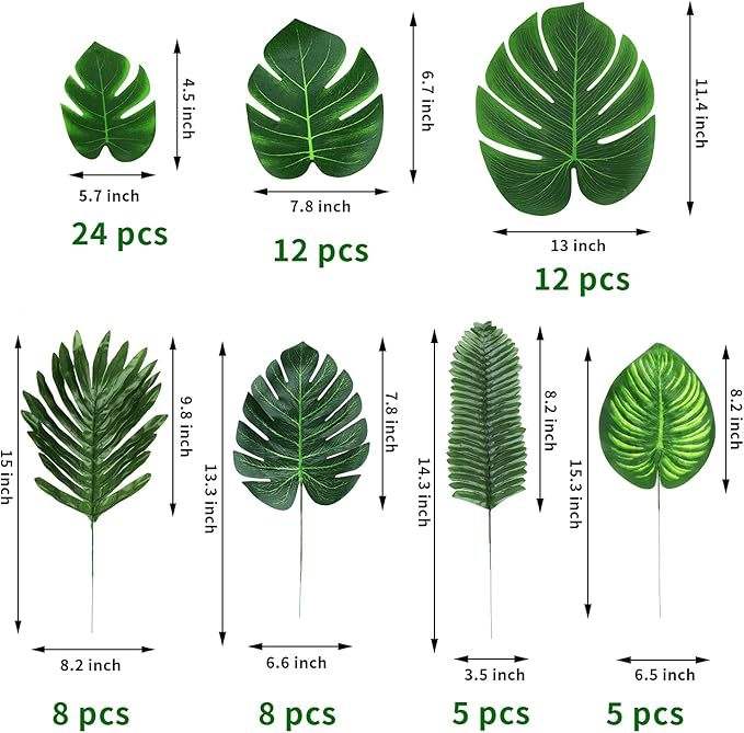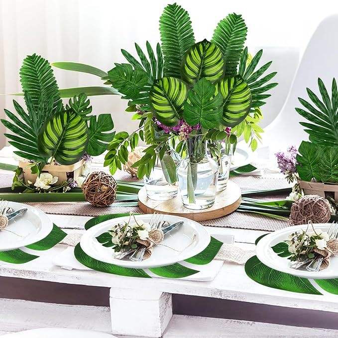 20 Pezzi di Foglie di Monstera Artificiali in Plastica, Decorazione Estiva Tropicale per Casa, Matrimoni e Feste Hawaiane