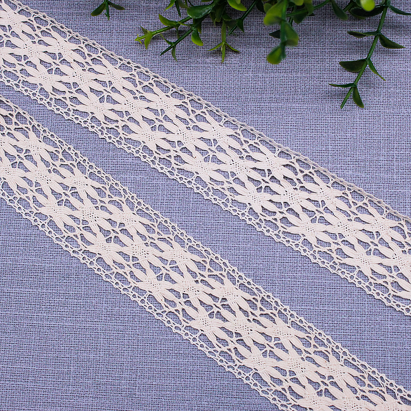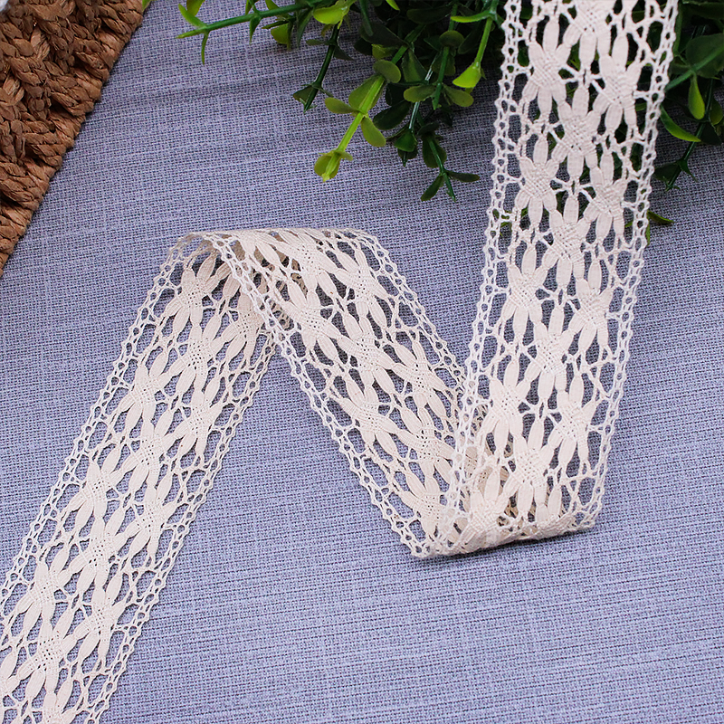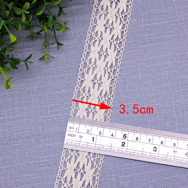 Bordo Decorativo in Pizzo all'Uncinetto da 3,5 cm, 100% Cotone Ecologico con Motivo Floreale per Abiti, Scarpe e Gonne