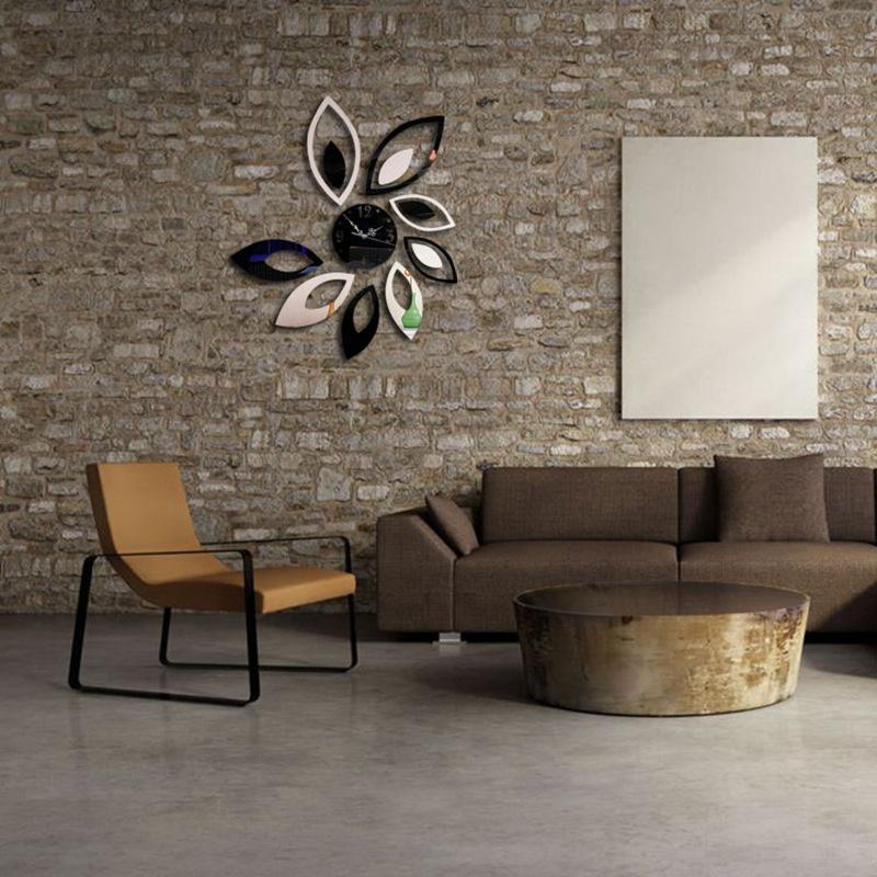 Vendita calda 3D albero foglie forma di carta da parati geometrica acrilico specchio orologio arte decorazione alla moda per la casa