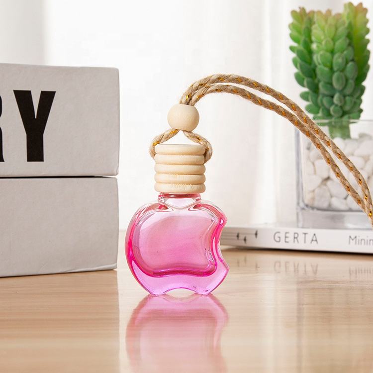 Hot Selling 6ml for Apple Shaped Gradient Color Car Perfume Diffuser Screw Cap Hanging Air Freshener Pendant Glass Bottle