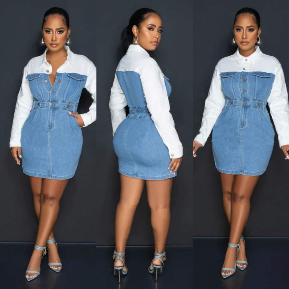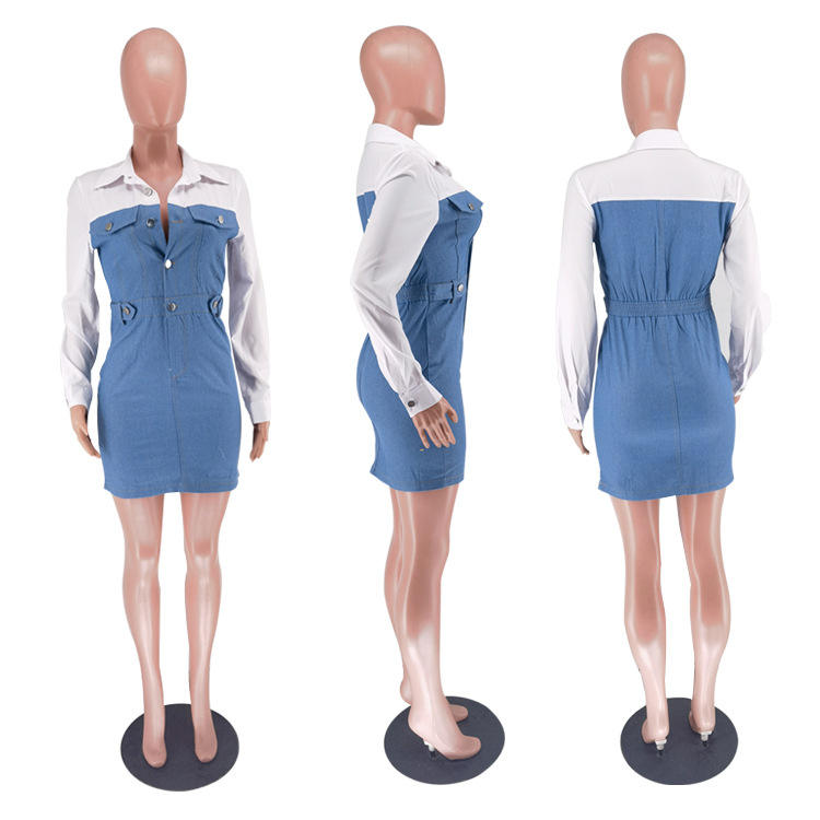 Vendita calda autunno e inverno popolare delle donne europee e americane in Denim stile Patchwork pendolarismo camicia abito