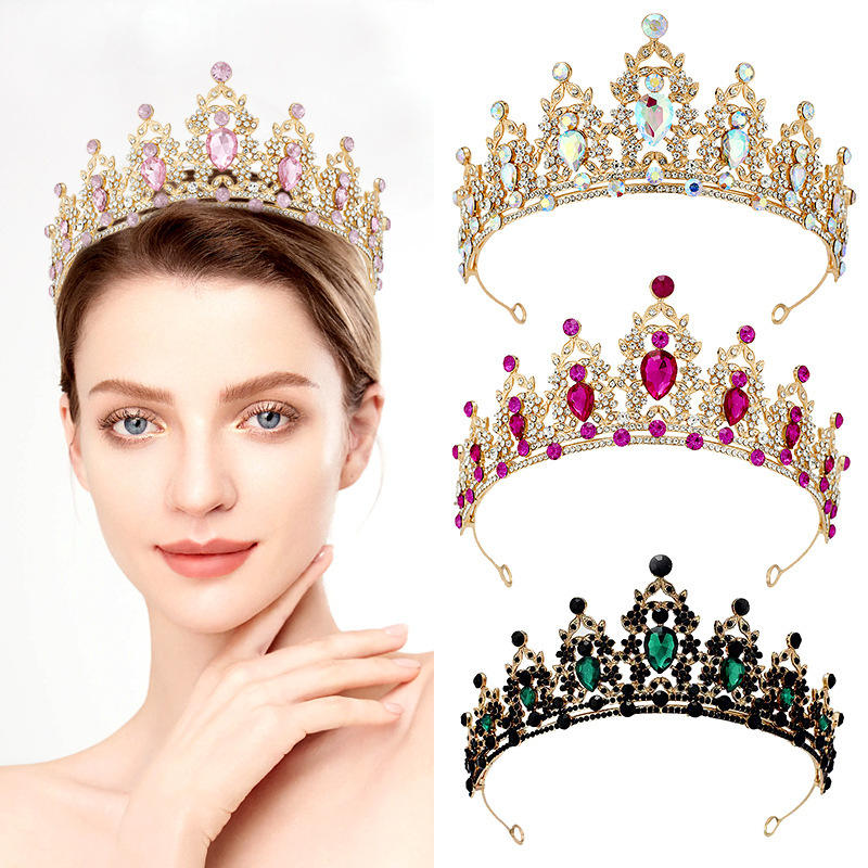 Corona Nuziale Barocca in Lega con Strass Colorati, Fascia per Capelli Perfetta per Abito da Sposa e Decorazione Torta