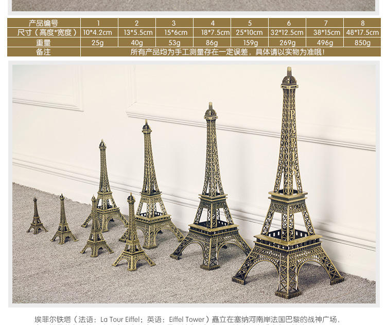Vendita calda in metallo bronzo Logo personalizzato regali creativi piccolo parigi torre Eiffel modello decorazione per la casa in metallo creativo torre Eiffel