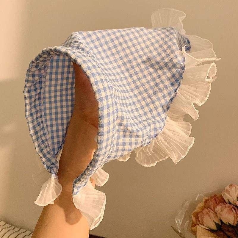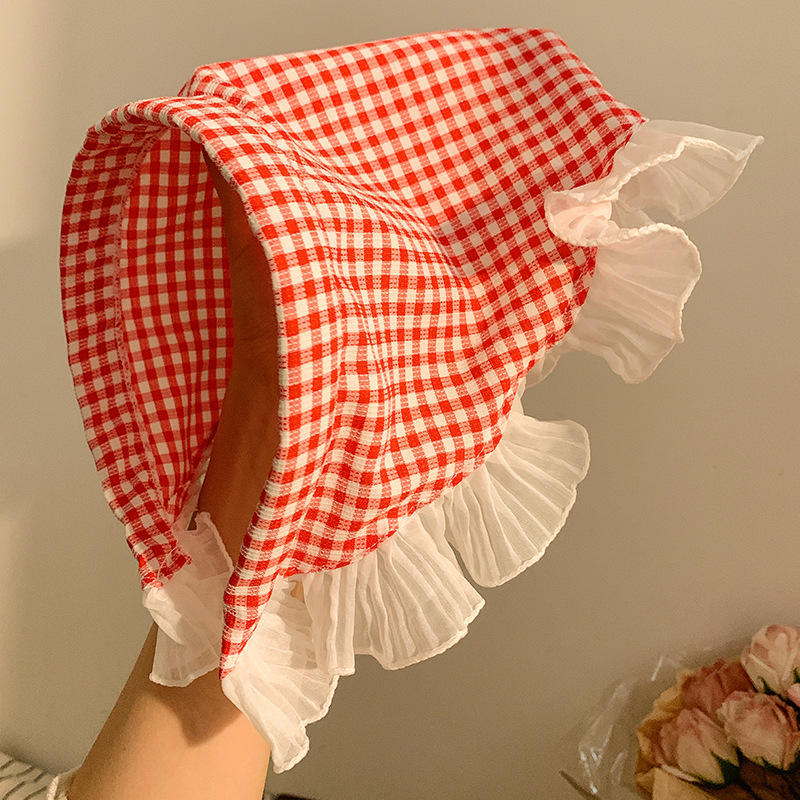 Hot Selling Cheap Hair Accessories Plaid Fabric Bandanas Headband for Girls Ruffled Checked Triangle Handkerchief Hairband