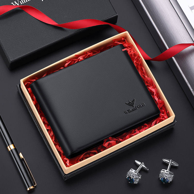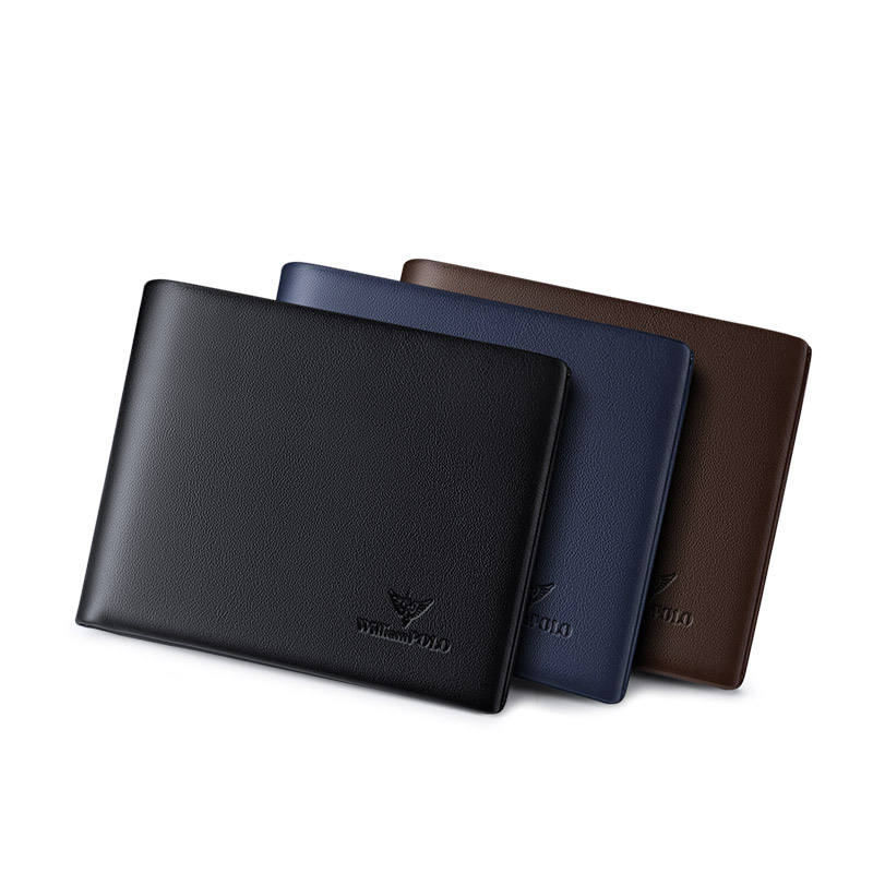 Vendita calda classica da uomo in vera pelle portafoglio corto con Hasp portamonete portacarte in tessuto nero Design aperto