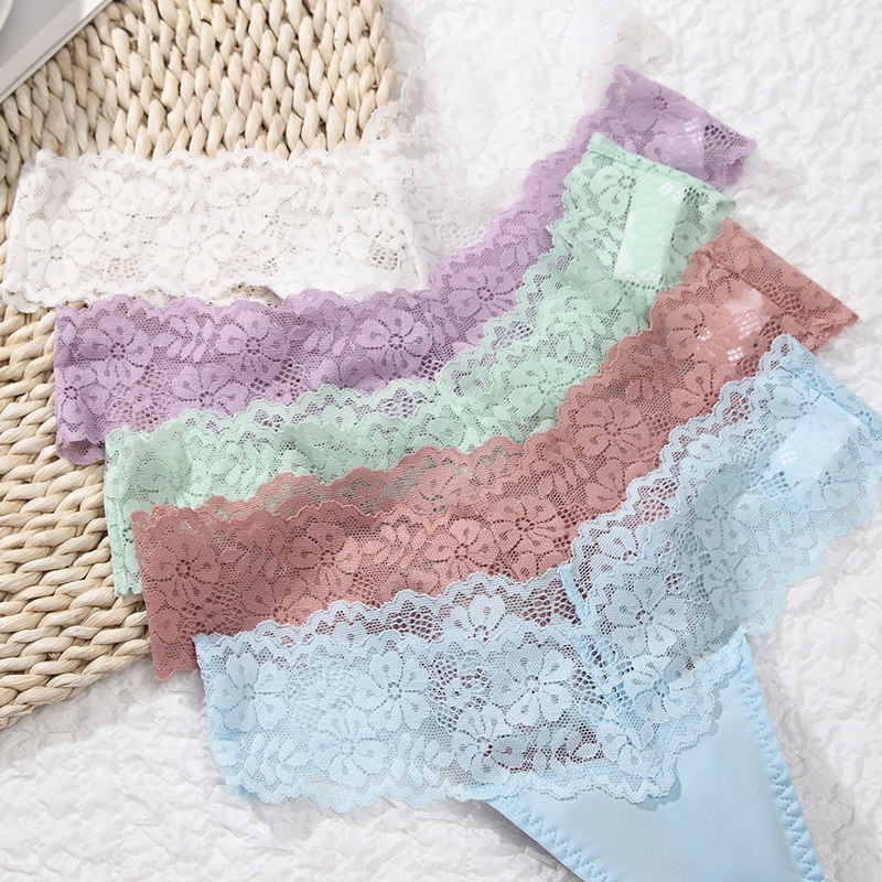 Slip da Donna in Pizzo Trasparente a Vita Media con Motivi Floreali, Comodo e Multicolore