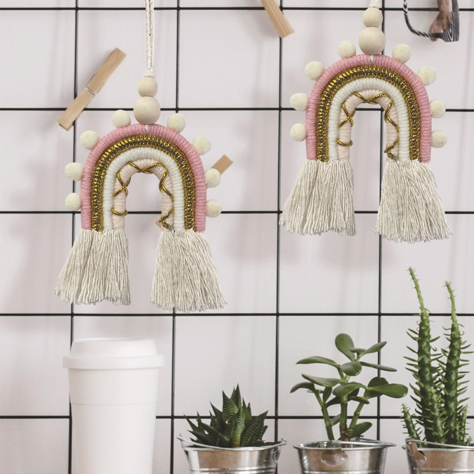 Vendita calda lettino in cotone Mobile arcobaleno e nuvola Macrame Mobile con cornice in bambù appeso a parete all'ingrosso