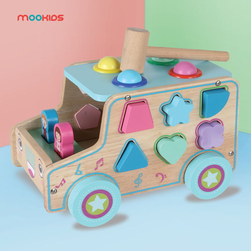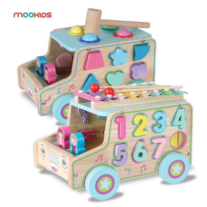 Hot Selling Creative DIY Wooden Toy Early Educational Kindergarten Puzzle Musical Car Pulling Game for Children