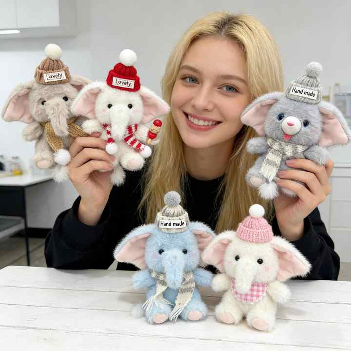 Hot Selling Creative Plush Elephant Doll Keychain Pendant, Cute PP Cotton Doll, Gift Bag Ornament, Claw Machine