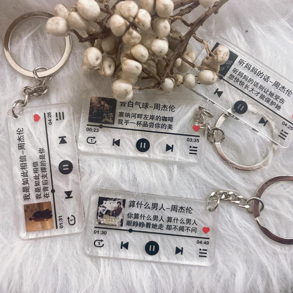 Hot Selling Custom Logo English Song Spotify Music KPOP Lyrics Charm DIY Clear Acrylic Keychain for Fans