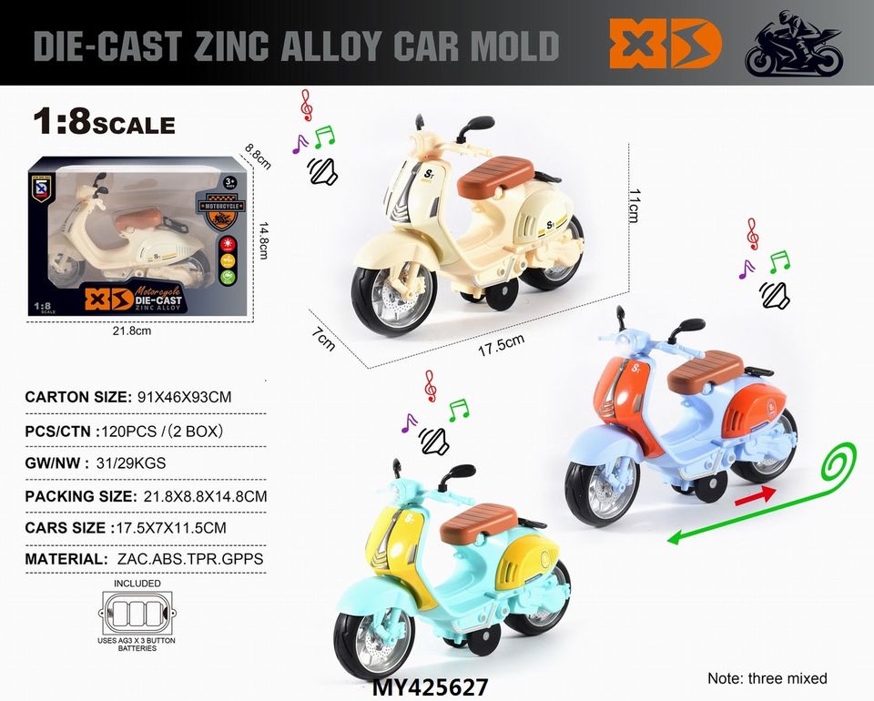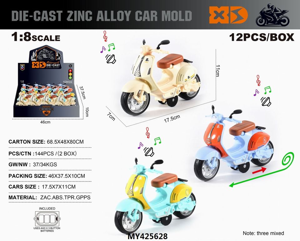 La vendita calda di auto pressofusa 1/8 piccola in lega di pecora modello di motocicletta tira indietro il suono e la musica leggera della moto