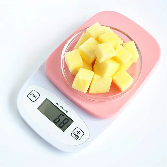 Bilancia da Cucina Digitale con Display LCD, Alimentata a Batteria, in Plastica ABS, 5kg, Colore Personalizzabile, Bilancia per Alimenti