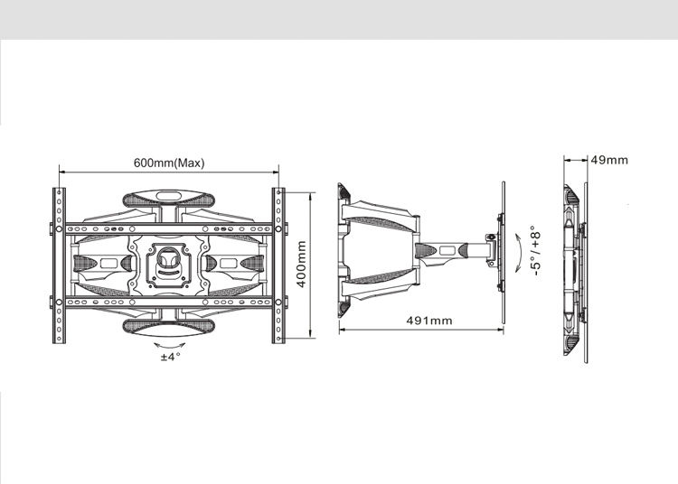 Hot Selling Eco-friendly 32-70 Inch 600*400 Vesa Metal Lcd Wall Tv Stand Design