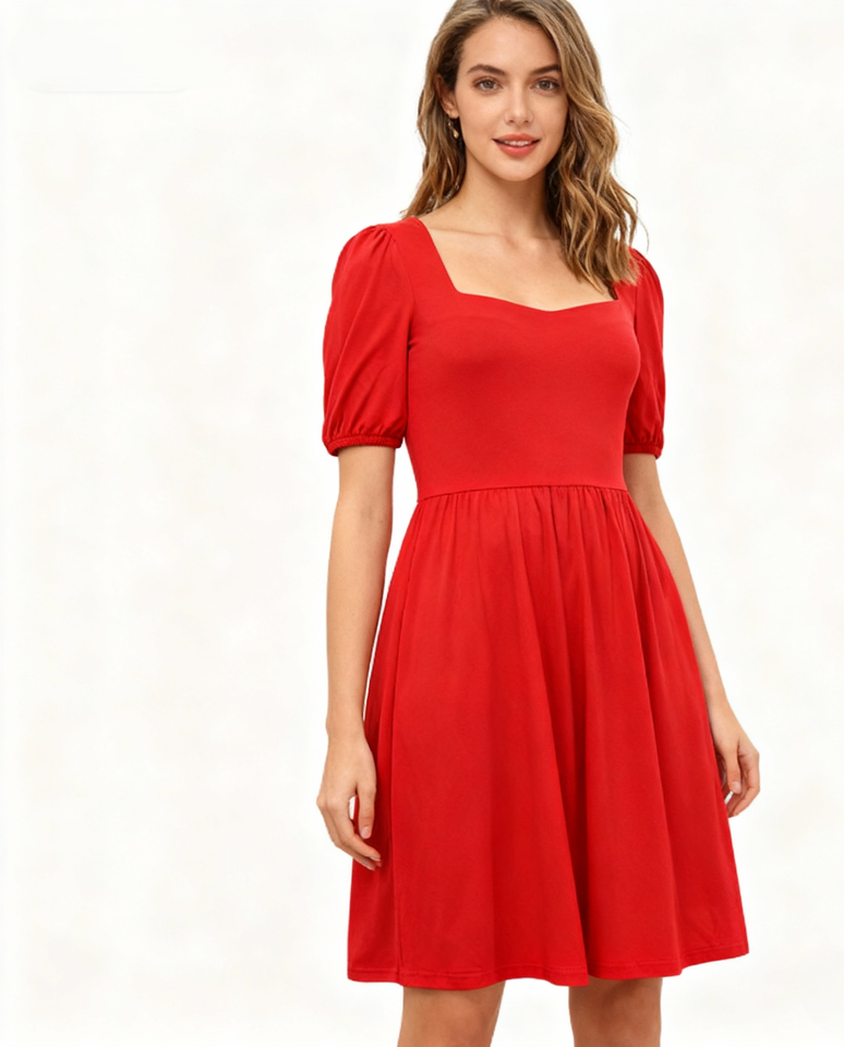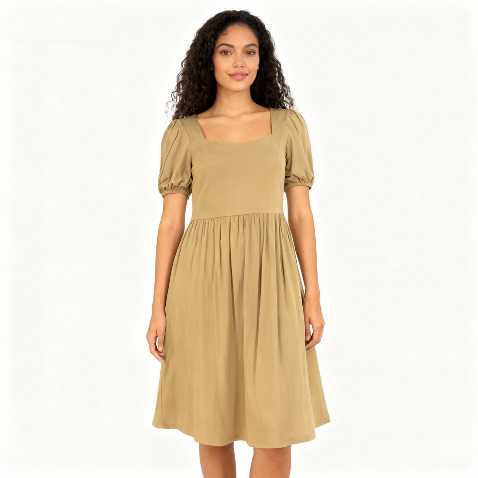 Hot Selling Elegant Soft Stretch Fashionable Casual Square-Cut Neck Shirring Waist Design Long Casual Dresses