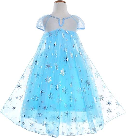 Vendita calda Elsa principessa Costume maniche corte abito di compleanno per bambine per 3-12 anni CrownMace accessori inclusi